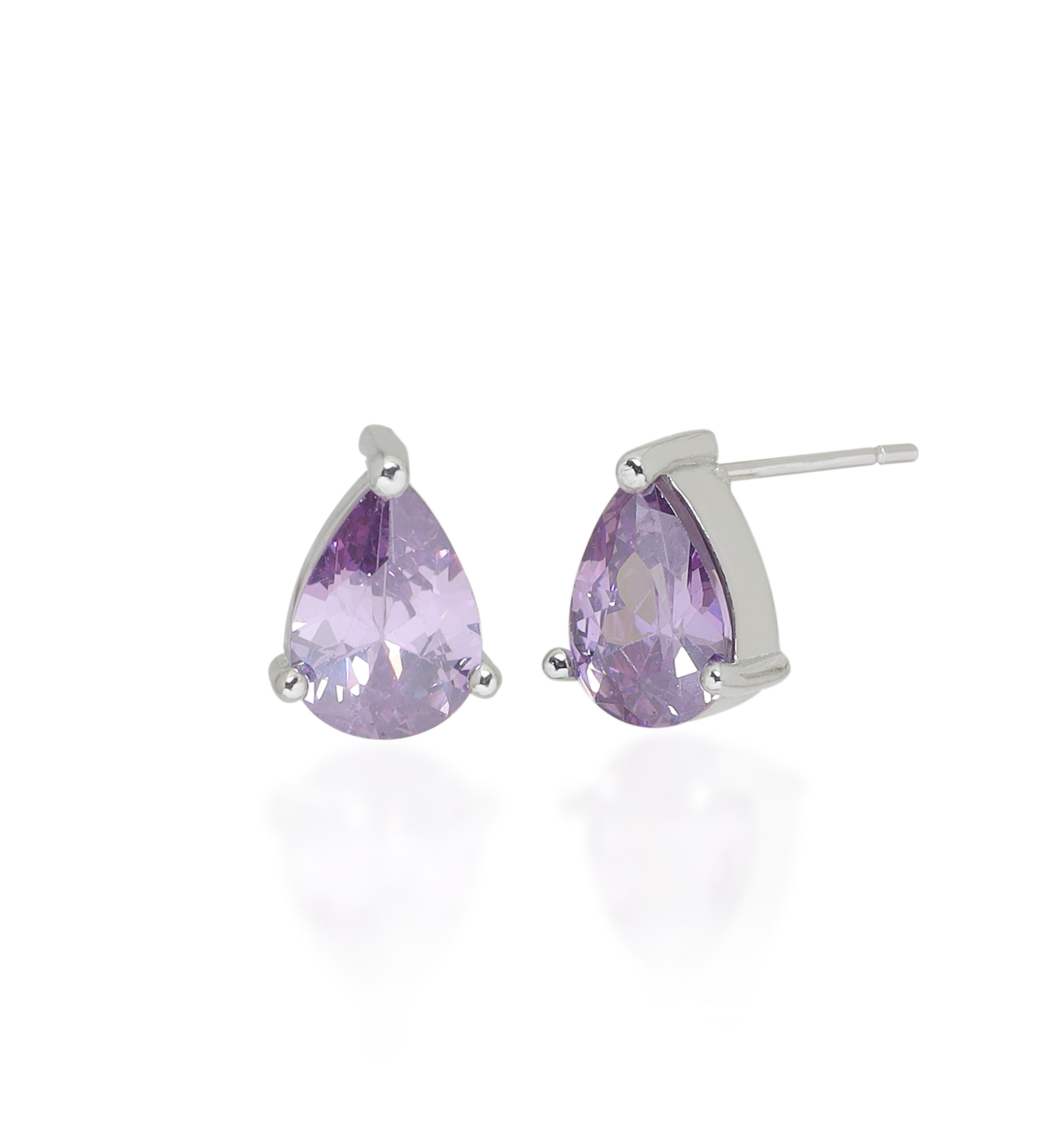 Crafted with care, the earrings feature a pear-shaped purple gemstone set in 925 sterling silver, radiating sophistication and timeless charm.